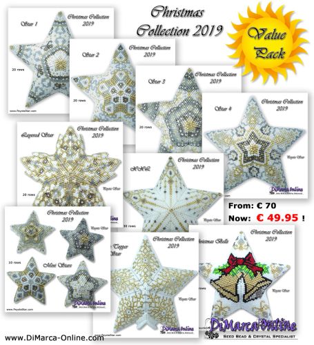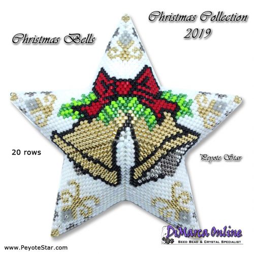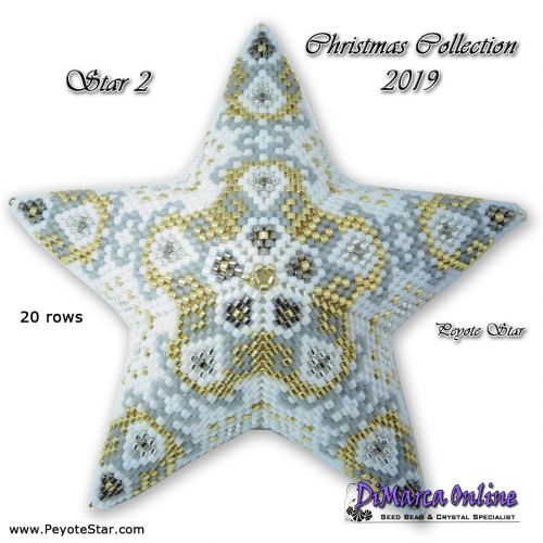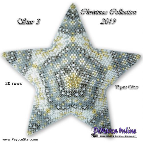 This beading pattern provides colour diagrams and word charts to create 12 CHRISTMAS 3D Peyote Stars of the Christmas Collection 2019.