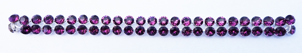 CRYSTALLIZED™ - Swarovski Elements Crystal Mesh. Crystal Mesh is a fluid metal mesh carrier with integrated loose crystals (2.7 mm each). The setting has four holes on the back, 1 on each side. These are sew-on chatons, non hotfix. You can use them for embellishing or string them as a bead. They are sold in a net with 2 rows of 25 crystals, so 50 crystals in total. The crystals are connected with little rings that you can cut if you want to use them separately. We have pieces with a foil on top that you can easily take off when you are finished sewing (or take off before you sew if you want to use them separately) - please let us know when you want to receive it with the foil. This is crystal of the highest quality.