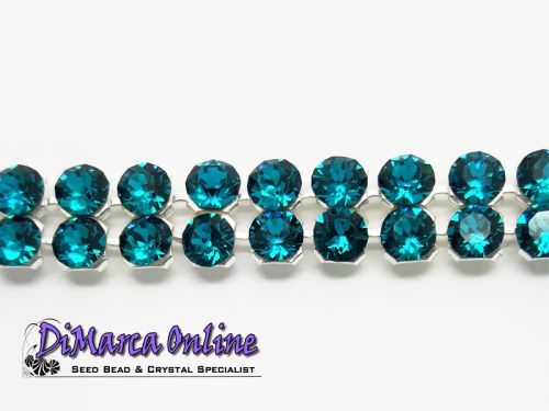 CRYSTALLIZED™ - Swarovski Elements Crystal Mesh. Crystal Mesh is a fluid metal mesh carrier with integrated loose crystals (2.7 mm each). The setting has four holes on the back, 1 on each side. These are sew-on chatons, non hotfix. You can use them for embellishing or string them as a bead. They are sold in a net with 2 rows of 25 crystals, so 50 crystals in total. The crystals are connected with little rings that you can cut if you want to use them separately. We have pieces with a foil on top that you can easily take off when you are finished sewing (or take off before you sew if you want to use them separately) - please let us know when you want to receive it with the foil. This is crystal of the highest quality.