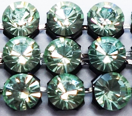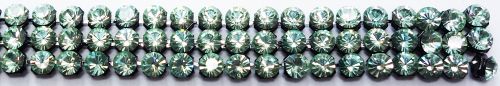 CRYSTALLIZED™ - Swarovski Elements Crystal Mesh. Crystal Mesh is a fluid metal mesh carrier with integrated loose crystals (2.7 mm each). The setting has four holes on the back, 1 on each side. These are sew-on chatons, non hotfix. You can use them for embellishing or string them as a bead. They are sold in a net of 3 rows, 50 crystals in total. The crystals are connected with little rings that you can cut if you want to use them separately. We have pieces with a foil on top that you can easily take off when you are finished sewing (or take off before you sew if you want to use them separately) - please let us know when you want to receive it with the foil.
