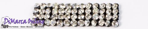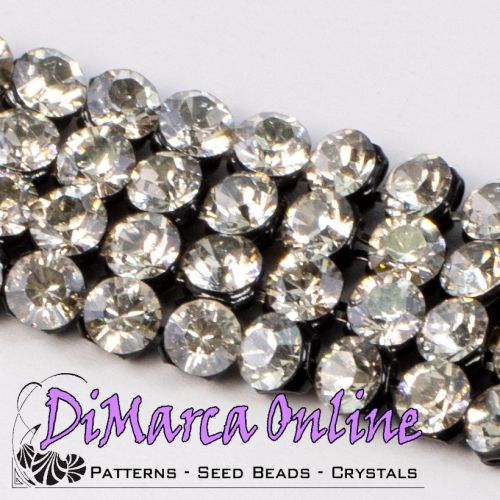 CRYSTALLIZED™ - Swarovski Elements Crystal Mesh. Crystal Mesh is a fluid metal mesh carrier with integrated loose crystals (2.7 mm each). The setting has four holes on the back, 1 on each side. These are hotfix chatons, which can be applied by heat or sewn. You can use them for embellishing or string them as a bead. They are sold in a net with 4 rows, 50 crystals in total. The crystals are connected with little rings that you can cut if you want to use them separately. We have pieces with a foil on top that you can easily take off when you are finished sewing (or take off before you sew if you want to use them separately) - please let us know when you want to receive it with the foil.
