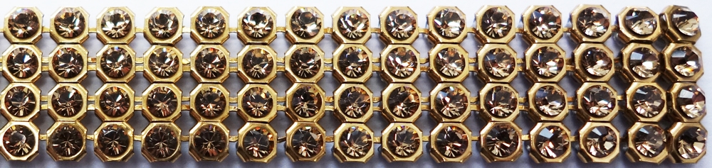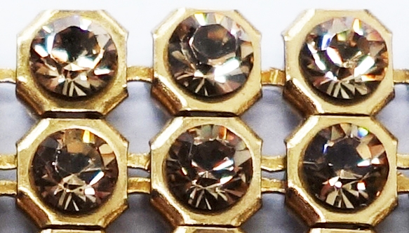 CRYSTALLIZED™ - Swarovski Elements Crystal Mesh. Crystal Mesh is a fluid metal mesh carrier with integrated loose crystals (2.7 mm each). The setting has four holes on the back, 1 on each side. These are hotfix chatons, which can be applied by heat or sewn. You can use them for embellishing or string them as a bead. They are sold in a net of 4 rows, 50 crystals in total. The crystals are connected with little rings that you can cut if you want to use them separately. We have pieces with a foil on top that you can easily take off when you are finished sewing (or take off before you sew if you want to use them separately) - please let us know when you want to receive it with the foil.