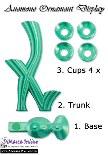 The Anemone Ornament Display will arrive in parts: push the trunk on the base and click the cups on the trunk and the base.