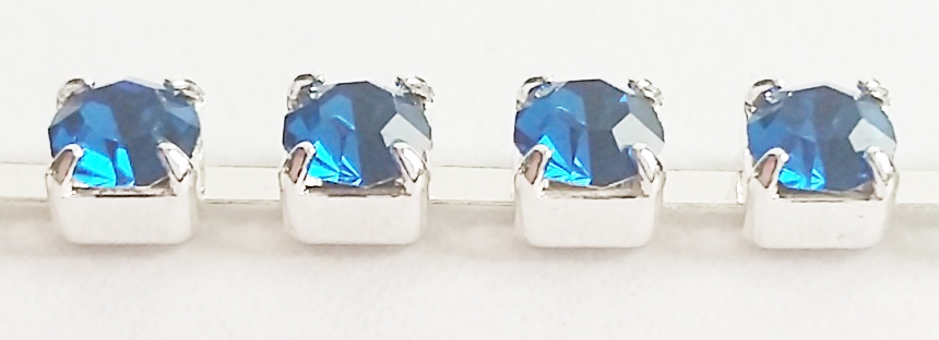 3 mm Preciosa Crystal Cupchain. Crystal chatons mounted in a metal setting, connected and placed on a chain. You can use them for embellishing, in bead embroidery, soutache, or string them as a bead. They are sold in pieces (1 row) of 20 cm, which is approximately 42 crystals in total.The chain can be cut to size easily using wire cutters and incorporated into multiple makes or use as a separate crystal. This is crystal of the highest quality.