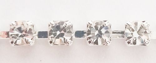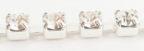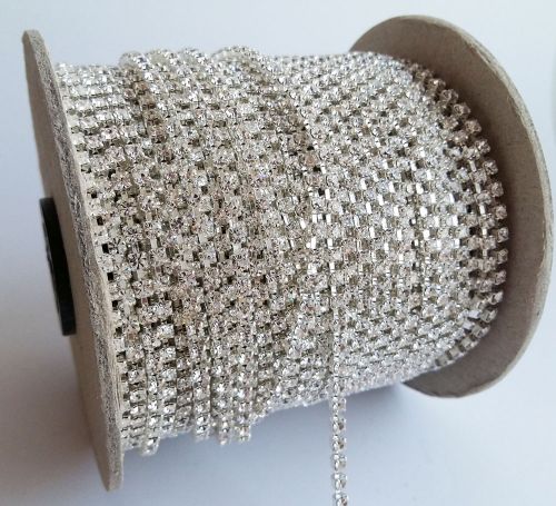 3 mm Preciosa Crystal Cupchain. Crystal chatons mounted in a metal setting, connected and placed on a chain. You can use them for embellishing, in bead embroidery, soutache, or string them as a bead. They are sold in pieces (1 row) of 20 cm, which is approximately 42 crystals in total.The chain can be cut to size easily using wire cutters and incorporated into multiple makes or use as a separate crystal. This is crystal of the highest quality.