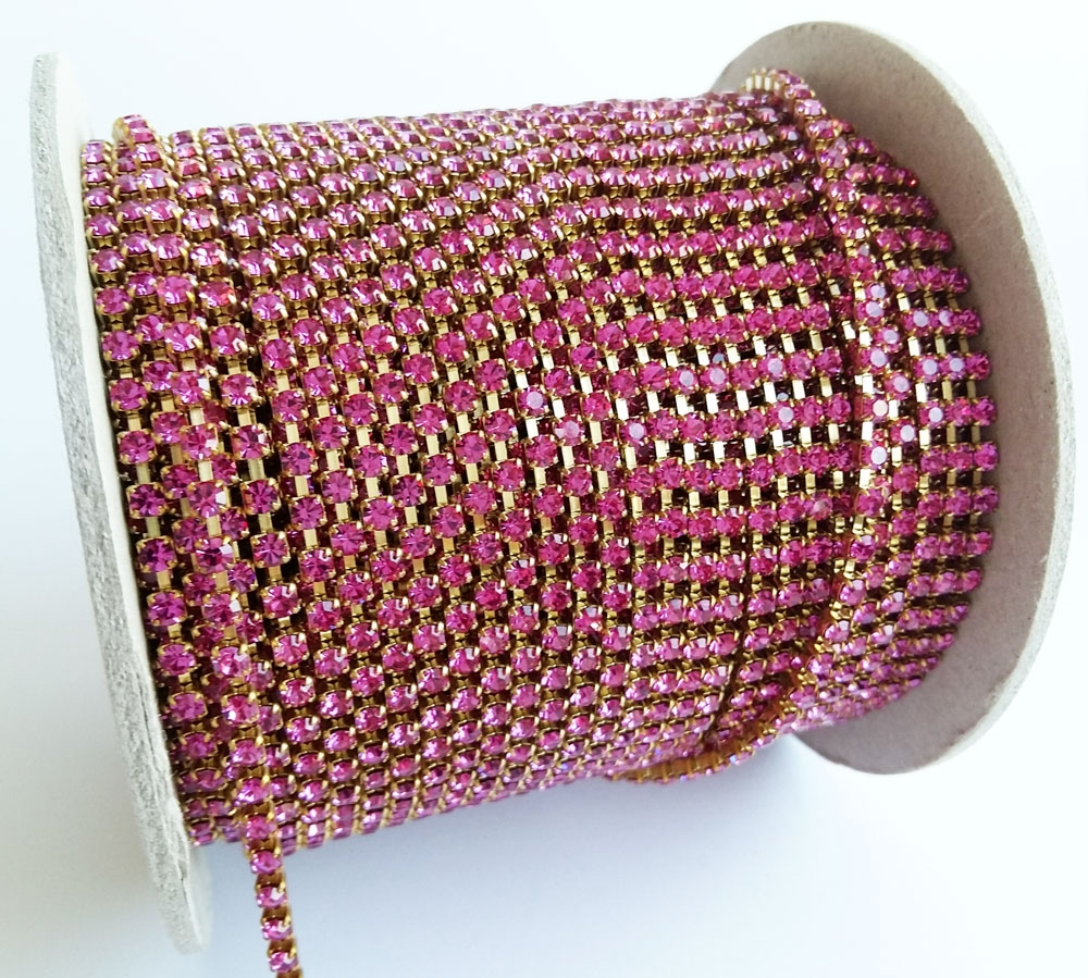 3 mm Preciosa Crystal Cupchain. Crystal chatons mounted in a metal setting, connected and placed on a chain. You can use them for embellishing, in bead embroidery, soutache, or string them as a bead. They are sold in pieces (1 row) of 20 cm, which isapproximately 42 crystals in total.The chain can be cut to size easily using wire cutters and incorporated into multiple makes or use as a separate crystal. This is crystal of the highest quality.