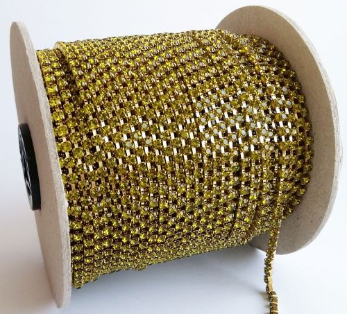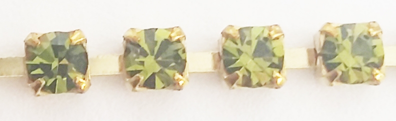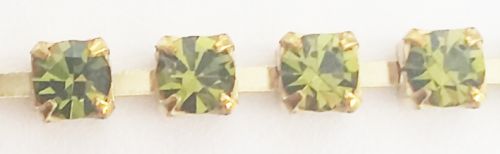 3 mm Preciosa Crystal Cupchain. Crystal chatons mounted in a metal setting, connected and placed on a chain. You can use them for embellishing, in bead embroidery, soutache, or string them as a bead. They are sold in pieces (1 row) of 20 cm, which isapproximately 42 crystals in total.The chain can be cut to size easily using wire cutters and incorporated into multiple makes or use as a separate crystal. This is crystal of the highest quality.