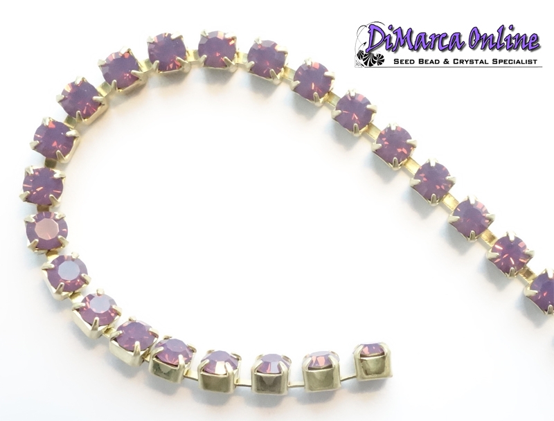 4 mm Preciosa Crystal Cupchain. Crystal chatons mounted in a metal setting, connected and placed on a chain. You can use them for embellishing, in bead embroidery, soutache, or string them as a bead. They are sold in pieces (1 row) of 10 cm, which is approximately 18 crystals in total.The chain can be cut to size easily using wire cutters and incorporated into multiple makes or use as a separate crystal. This is crystal of the highest quality.