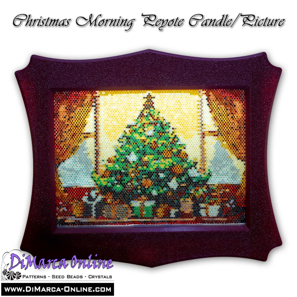 This beading pattern provides colour diagrams and word charts to create the CHRISTMAS MORNING 3D Peyote Candle/Picture.