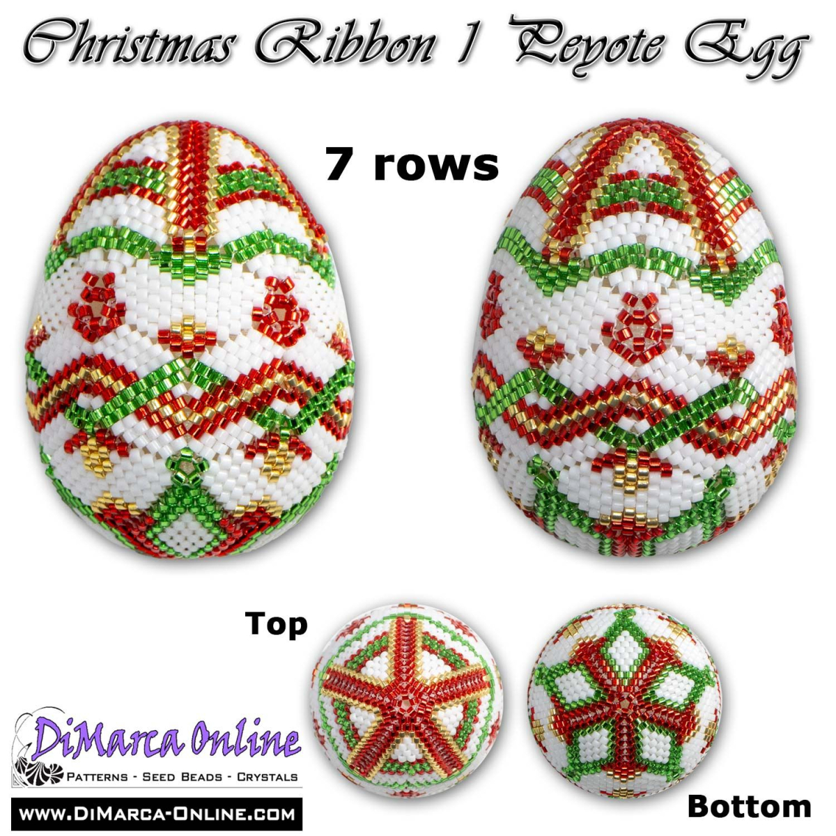 This beading pattern provides colour diagrams and word charts to create the CHRISTMAS RIBBON 1 - 3D Peyote Egg.