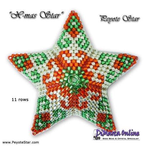 It includes a list of needed materials and colour codes. The star is beaded with Miyuki Delica's. You can also use Toho Treasures (but don't mix them, as there is a slight difference in size).