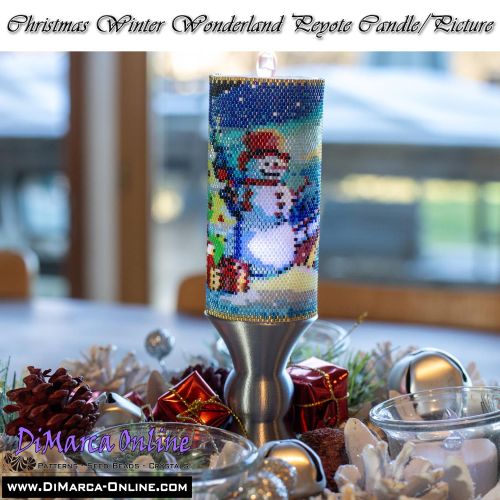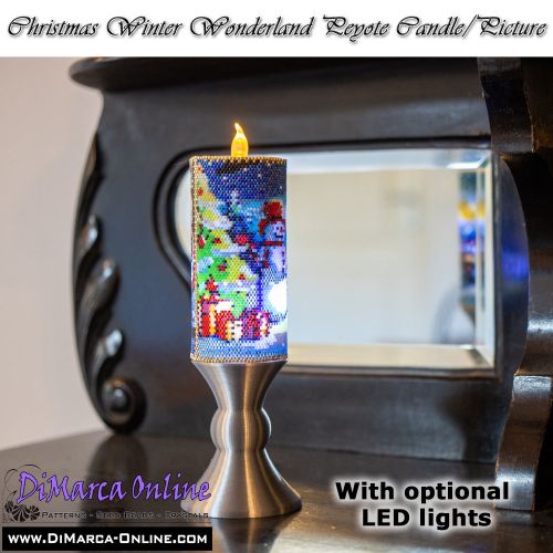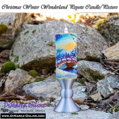 This beading pattern provides colour diagrams and word charts to create the CHRISTMAS WINTER WONDERLAND 3D Peyote Candle/Picture.