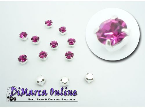 3.5 mm Preciosa Crystal Chatons in Setting/Chatons Montees. Crystal foil-backed chatons mounted in a metal setting with four holes on the back, 1 on each side. These are sew-on chatons. You can use them for embellishing or string them as a double-drilled bead. This is crystal of the highest quality.