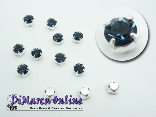 3.5 mm Preciosa Crystal Chatons in Setting/Chatons Montees. Crystal foil-backed chatons mounted in a metal setting with four holes on the back, 1 on each side. These are sew-on chatons. You can use them for embellishing or string them as a double-drilled bead. This is crystal of the highest quality.