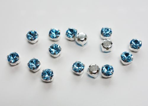 4 mm Preciosa Crystal Chatons in Setting/Chatons Montees. Crystal foil-backed chatons mounted in a metal setting with four holes on the back, 1 on each side. These are sew-on chatons. You can use them for embellishing or string them as a double-drilled bead. This is crystal of the highest quality.