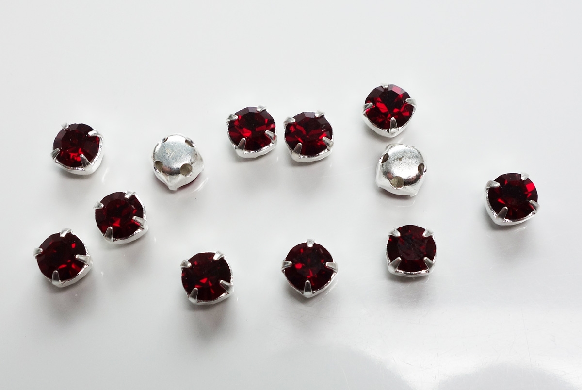 4 mm Preciosa Crystal Chatons in Setting/Chatons Montees. Crystal foil-backed chatons mounted in a metal setting with four holes on the back, 1 on each side. These are sew-on chatons. You can use them for embellishing or string them as a double-drilled bead. This is crystal of the highest quality.