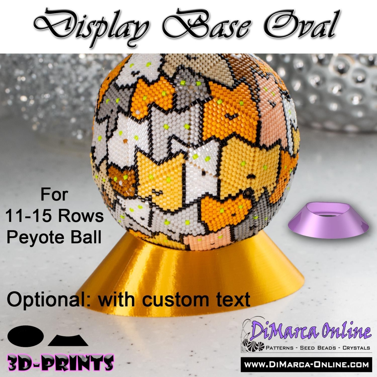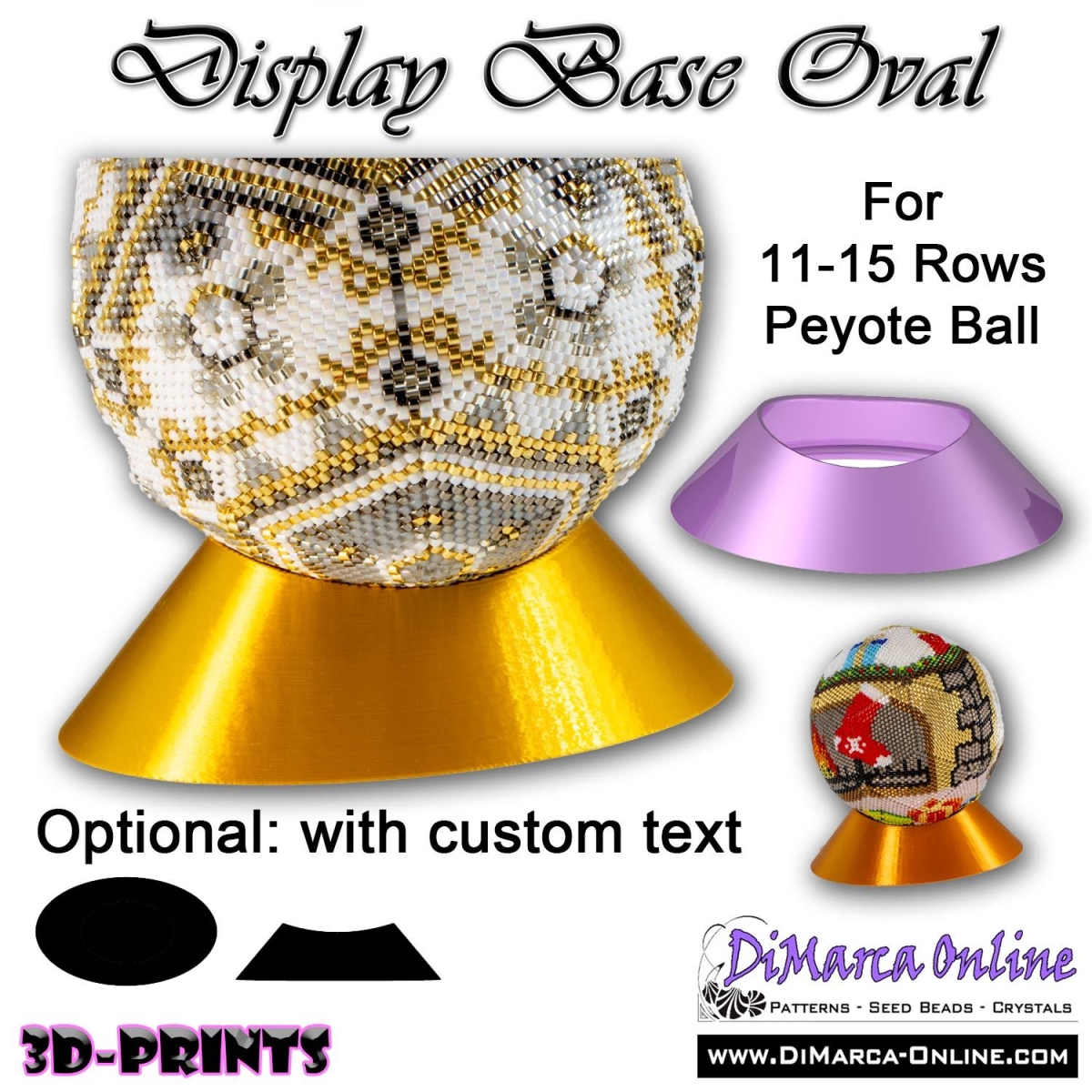 The Display Base can hold 1 Peyote Ball from 11 to 15 rows.