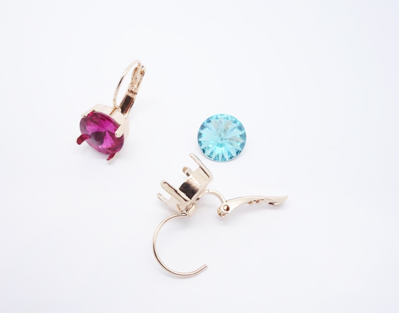 Earring Setting for 10 mm Crystal Rivoli's. The rivoli's can be set by bending the 4 prongs gently inwards with pliers.