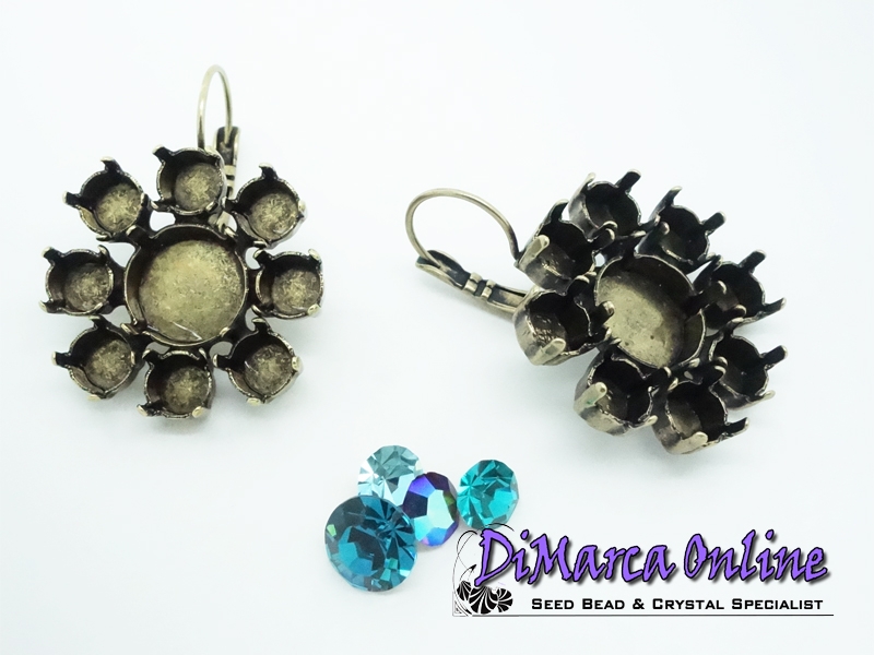 Earring Setting for 8 x 6 mm (SS29) Crystal Chatons and 1 x 12 mm Crystal Rivoli. The chatons and rivoli can be set by bending the 4 prongs gently inwards with pliers.