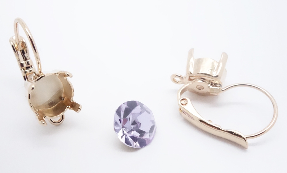Earring Setting for 8 mm (SS39) Crystal Chatons with bottom loop to add a dangle or drop. The chatons can be set by bending the 4 prongs gently inwards with pliers.