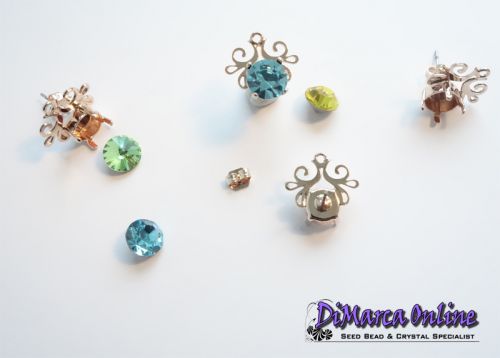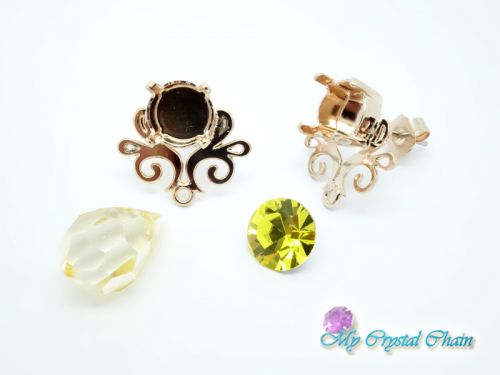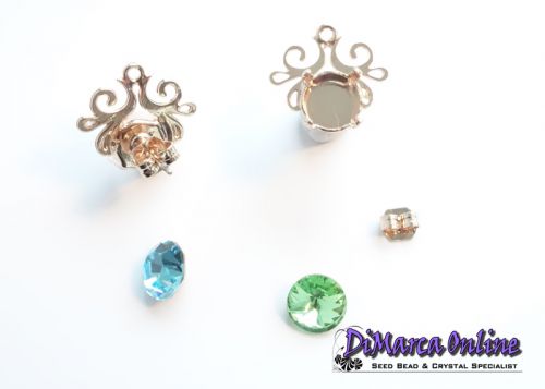 Earring Setting for 8 mm (SS39) Crystal Chatons with bottom loop to add a dangle or drop. The chatons can be set by bending the 4 prongs gently inwards with pliers.