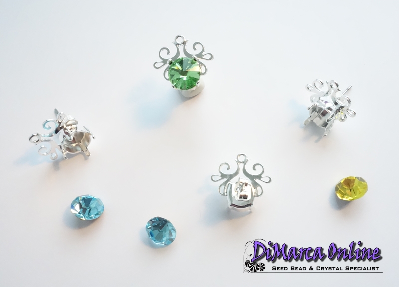 Earring Setting for 8 mm (SS39) Crystal Chatons with bottom loop to add a dangle or drop. The chatons can be set by bending the 4 prongs gently inwards with pliers.