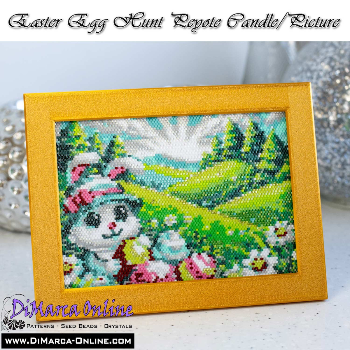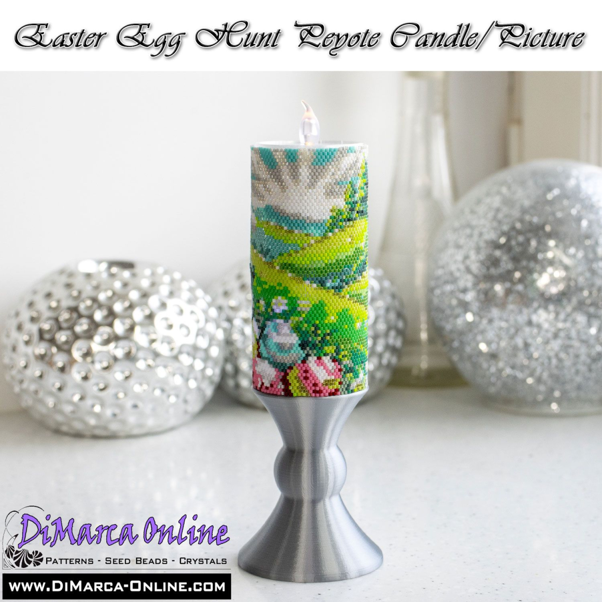 This beading pattern provides colour diagrams and word charts to create the EASTER EGG HUNT 3D Peyote Candle/Picture.