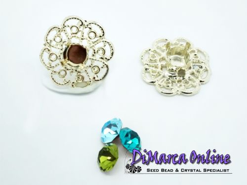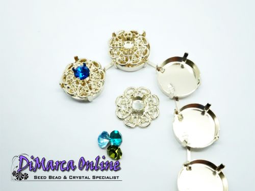 Embedding Elements will enrich your Cup Chain in a very classy way. Instead of a Chaton or Rivoli, you can insert an Embedding Element. It fits exactly in the Empty Cup Chain Settings. These Embedding Elements are made for 6 mm (SS29) Crystal Chatons and fit in 18 mm Empty Cup Chain Settings. The Embedding Elements can be set by bending the 4 prongs gently inwards with pliers.