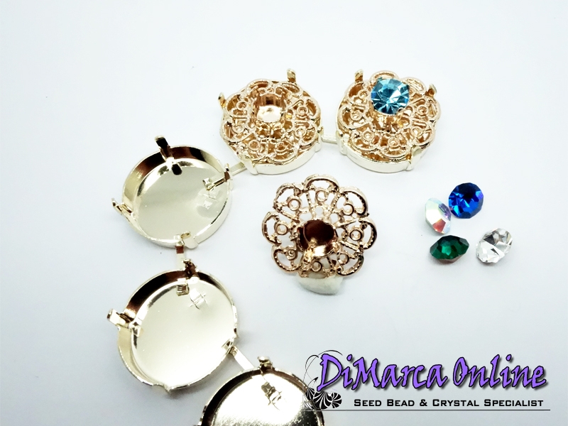 Embedding Elements will enrich your Cup Chain in a very classy way. Instead of a Chaton or Rivoli, you can insert an Embedding Element. It fits exactly in the Empty Cup Chain Settings. These Embedding Elements are made for 6 mm (SS29) Crystal Chatons and fit in 18 mm Empty Cup Chain Settings. The Embedding Elements can be set by bending the 4 prongs gently inwards with pliers.