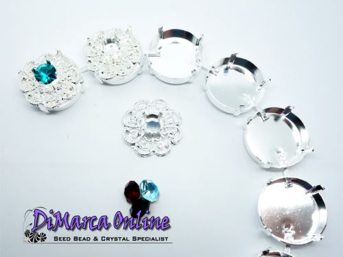 Embedding Elements will enrich your Cup Chain in a very classy way. Instead of a Chaton or Rivoli, you can insert an Embedding Element. It fits exactly in the Empty Cup Chain Settings. These Embedding Elements are made for 6 mm (SS29) Crystal Chatons and fit in 18 mm Empty Cup Chain Settings. The Embedding Elements can be set by bending the 4 prongs gently inwards with pliers.