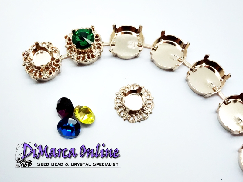 Embedding Elements will enrich your Cup Chain in a very classy way. Instead of a Chaton or Rivoli, you can insert an Embedding Element. It fits exactly in the Empty Cup Chain Settings. These Embedding Elements are made for 8 mm (SS39) Crystal Chatons and fit in 14 mm Empty Cup Chain Settings. The Embedding Elements can be set by bending the 4 prongs gently inwards with pliers.