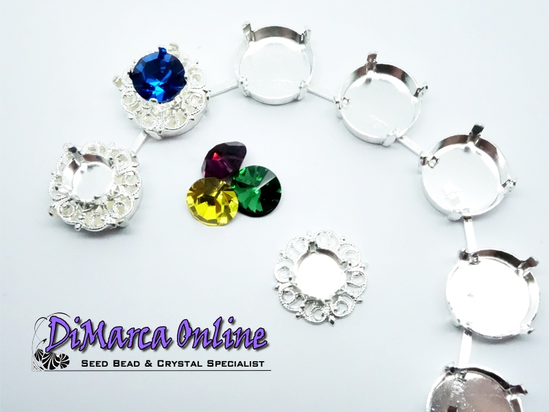 Embedding Elements will enrich your Cup Chain in a very classy way. Instead of a Chaton or Rivoli, you can insert an Embedding Element. It fits exactly in the Empty Cup Chain Settings. These Embedding Elements are made for 8 mm (SS39) Crystal Chatons and fit in 14 mm Empty Cup Chain Settings. The Embedding Elements can be set by bending the 4 prongs gently inwards with pliers.