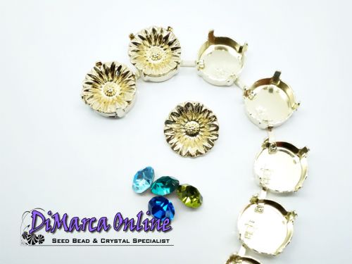 Embedding Elements will enrich your Cup Chain in a very classy way. Instead of a Chaton or Rivoli, you can insert an Embedding Element. It fits exactly in the Empty Cup Chain Settings. These Embedding Elements fit in 12 mm Empty Cup Chain Settings. The Embedding Elements can be set by bending the 4 prongs gently inwards with pliers.