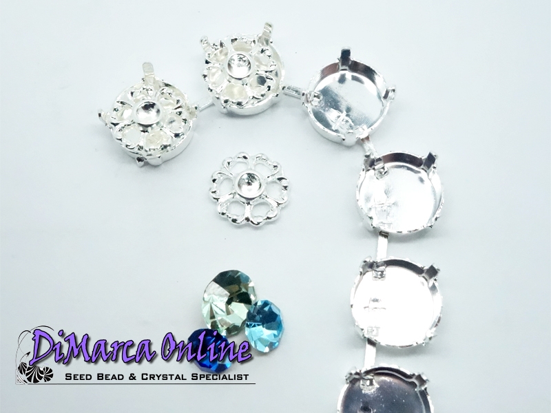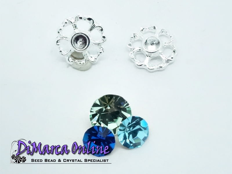 Embedding Elements Hollow Flower for 12 mm Cup Chain Silver Plated - 2 x