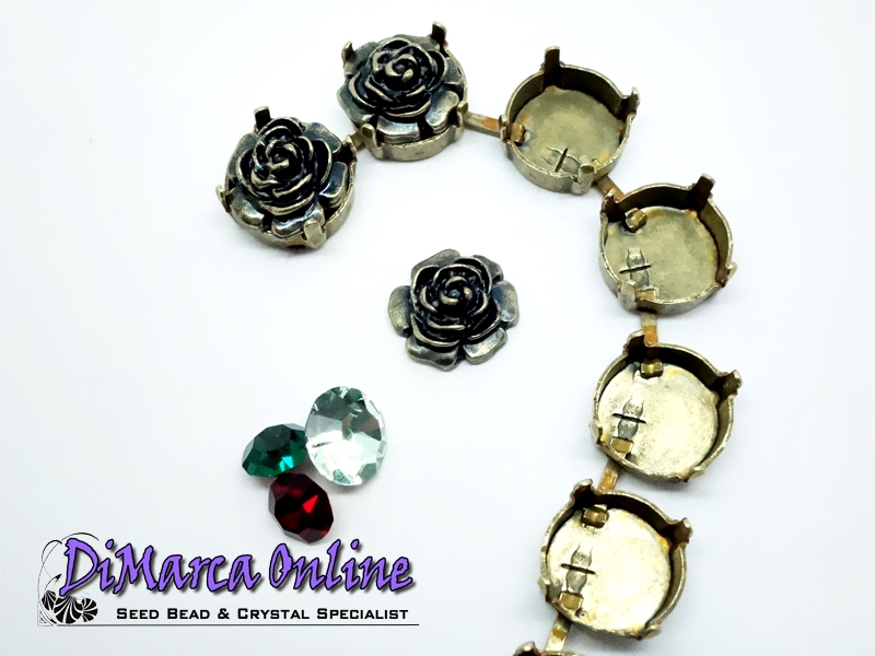Embedding Elements will enrich your Cup Chain in a very classy way. Instead of a Chaton or Rivoli, you can insert an Embedding Element. It fits exactly in the Empty Cup Chain Settings. These Embedding Elements fit in 12 mm Empty Cup Chain Settings. The Embedding Elements can be set by bending the 4 prongs gently inwards with pliers.