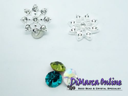 Embedding Elements will enrich your Cup Chain in a very classy way. Instead of a Chaton or Rivoli, you can insert an Embedding Element. It fits exactly in the Empty Cup Chain Settings. These Embedding Elements fit in 12 mm Empty Cup Chain Settings. The Embedding Elements can be set by bending the 4 prongs gently inwards with pliers.