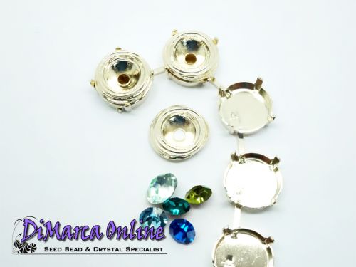 Embedding Elements will enrich your Cup Chain in a very classy way. Instead of a Chaton or Rivoli, you can insert an Embedding Element. It fits exactly in the Empty Cup Chain Settings. These Embedding Elements are made for 8 mm (SS39) Crystal Chatons and fit in 14 mm Empty Cup Chain Settings. The Embedding Elements can be set by bending the 4 prongs gently inwards with pliers. Use glue to embed the chatons in the Embedding Elements.