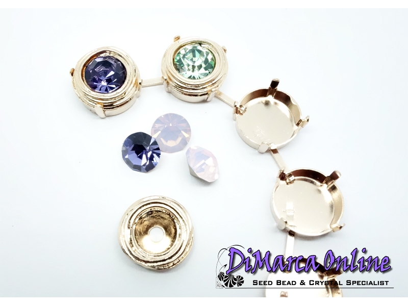 Embedding Elements will enrich your Cup Chain in a very classy way. Instead of a Chaton or Rivoli, you can insert an Embedding Element. It fits exactly in the Empty Cup Chain Settings. These Embedding Elements are made for 8 mm (SS39) Crystal Chatons and fit in 14 mm Empty Cup Chain Settings. The Embedding Elements can be set by bending the 4 prongs gently inwards with pliers. Use glue to embed the chatons in the Embedding Elements.