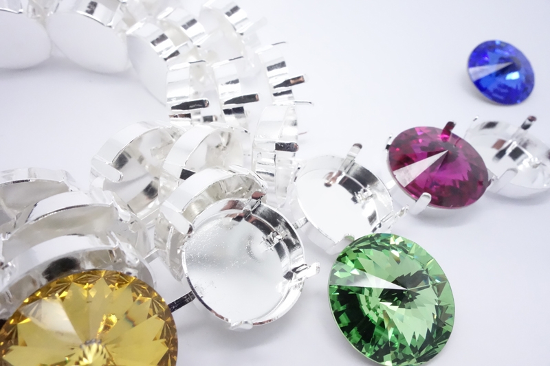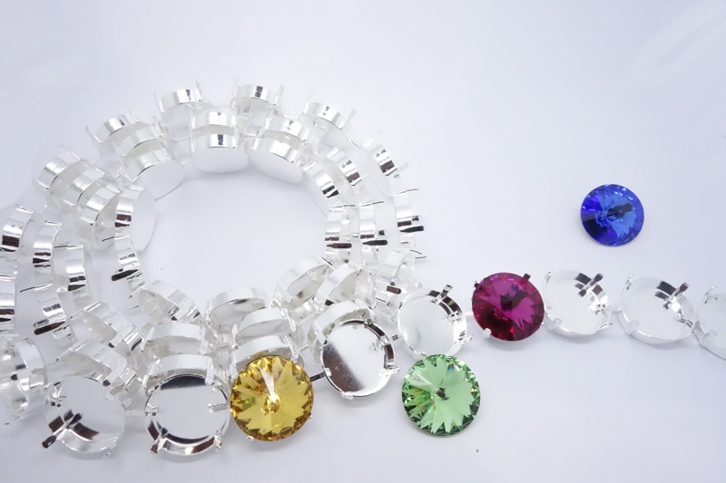 Empty Cup Chain for 14 mm Crystal Rivoli's. The rivoli's can be set by bending the 4 prongs gently inwards with pliers.