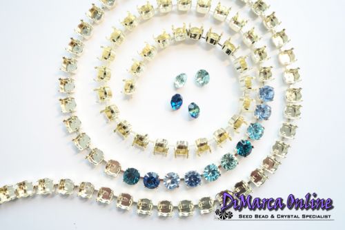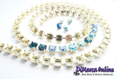 Empty Cup Chain for 6 mm Crystal Chatons or Rivoli's. The chatons/rivoli's can be set by bending the 4 prongs gently inwards with pliers.