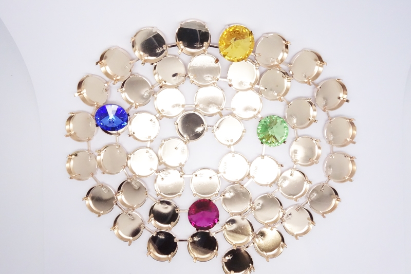 Empty Cup Chain for 12 mm Crystal Rivoli's. The rivoli's can be set by bending the 4 prongs gently inwards with pliers.