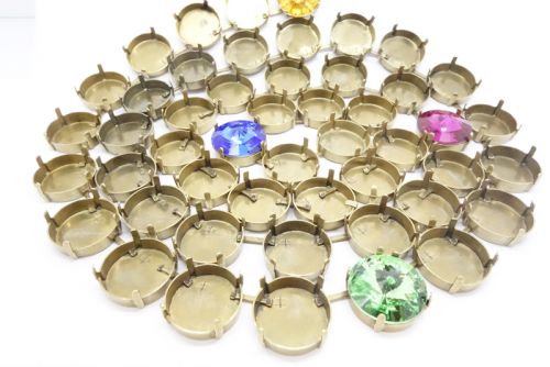 Empty Cup Chain for 14 mm Crystal Rivoli's. The rivoli's can be set by bending the 4 prongs gently inwards with pliers.