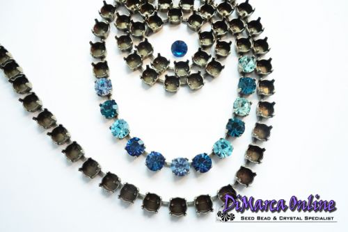 Empty Cup Chain for 8 mm Crystal Chatons or Rivoli's. The chatons/rivoli's can be set by bending the 4 prongs gently inwards with pliers.