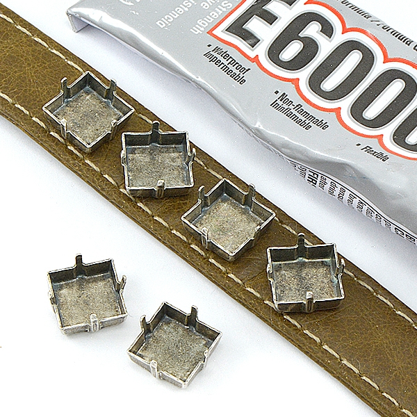 Empty Cup Settings for 12 mm Crystal Squares by Preciosa or Swarovski (Princess 4447). The squares can be set by bending the 4 prongs gently inwards with pliers.