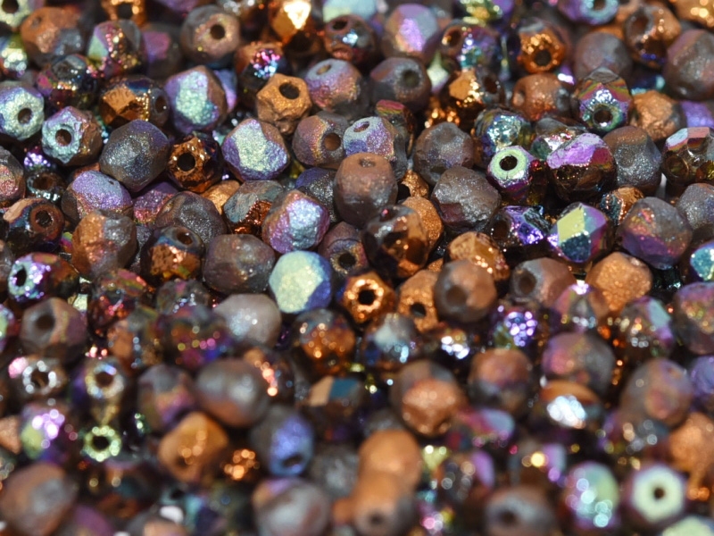 FP04 Etched Glittery Bronze 4 mm Fire Polished - 100 x