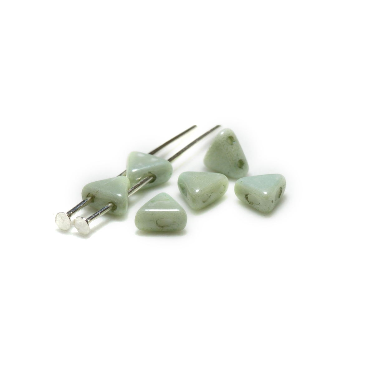 KHEOPS®. Triangular shaped beads with 2 parallel holes going all the way through the flat edge of the bead. Designed by the chic Parisienne Puca.