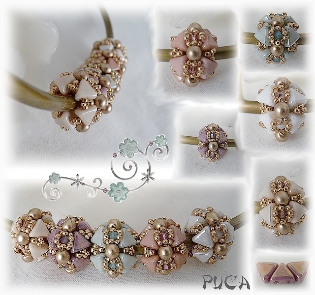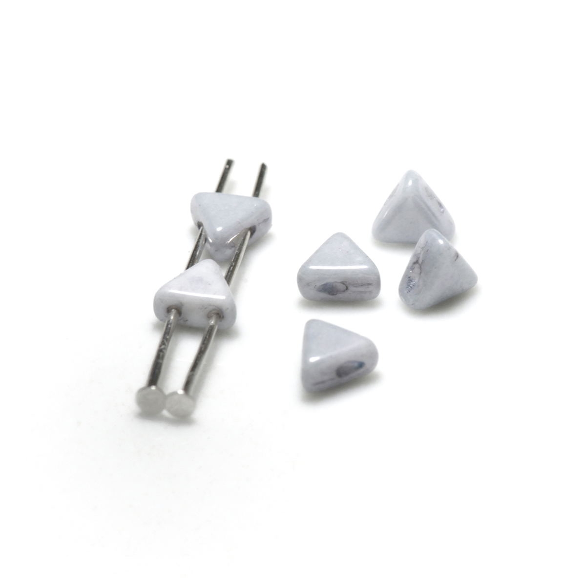 KHEOPS®. Triangular shaped beads with 2 parallel holes going all the way through the flat edge of the bead. Designed by the chic Parisienne Puca.