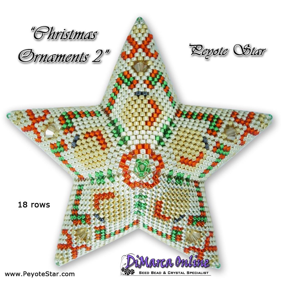 The kit contains all the Miyuki Delica Beads and Preciosa bicones you need to make the CHRISTMAS ORNAMENT 2 Peyote Star.