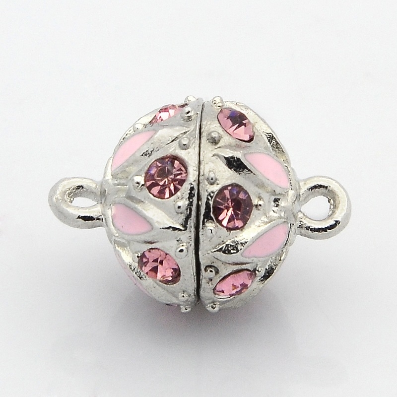 MAGNETIC CLASP PINK ENAMEL WITH RHINESTONES