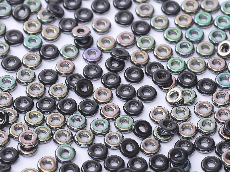 O-BEADS. A flattened donut shaped bead, a mini ring with a central hole of approx 1.3 mm.